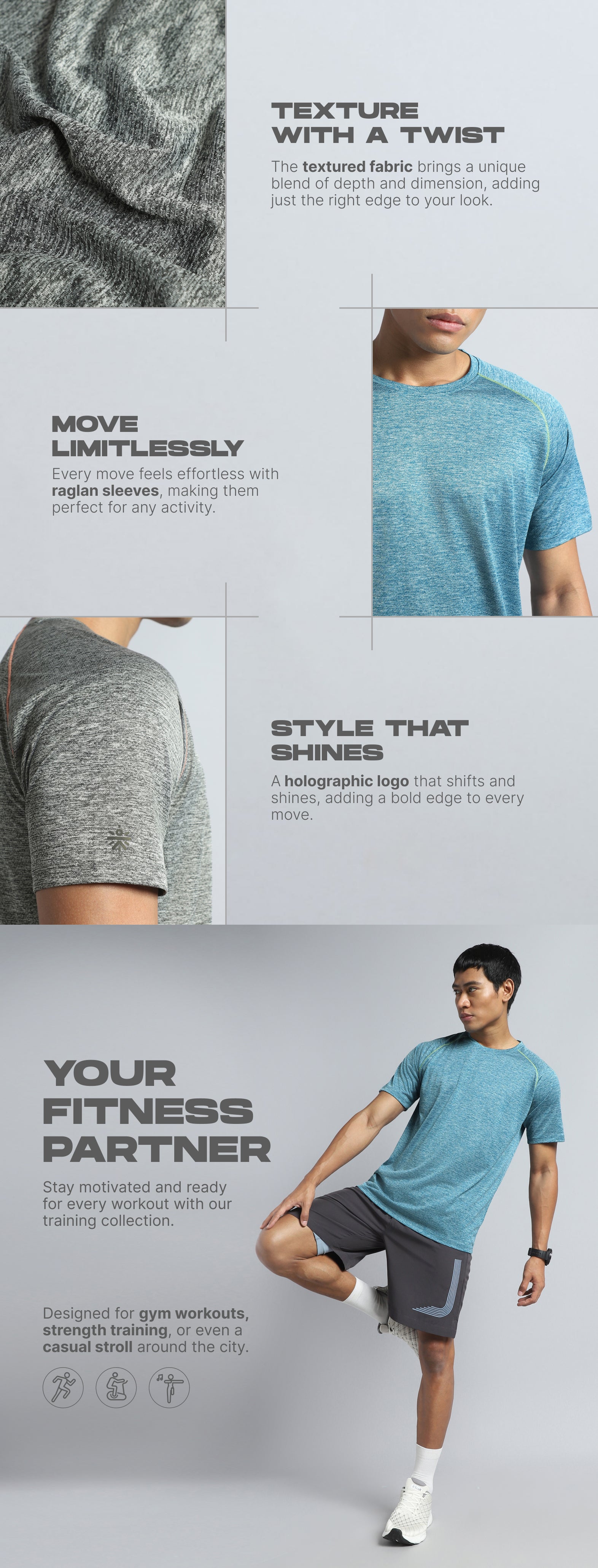 Chase every rep in style with the Men’s Grey Training Sculpted T-shirt. Made with lightweight, textured fabric, it feels breathable and smooth through every move. FLY-DRY™ tech wicks away sweat to keep you dry and comfortable. The raglan sleeves allow easy, unrestricted motion. The holographic logo adds a bold, reflective finish.