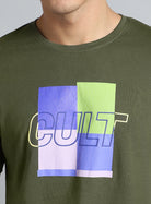 Made for couch days and coffee runs, this Men's Olive Cult Graphic T-shirt keeps it effortlessly easy. The super soft fabric delivers all-day comfort, wherever the day takes you. The ribbed neckband and classic crew neck offer a stylish, stay-put fit. The high-density print adds bold detail without weighing things down.