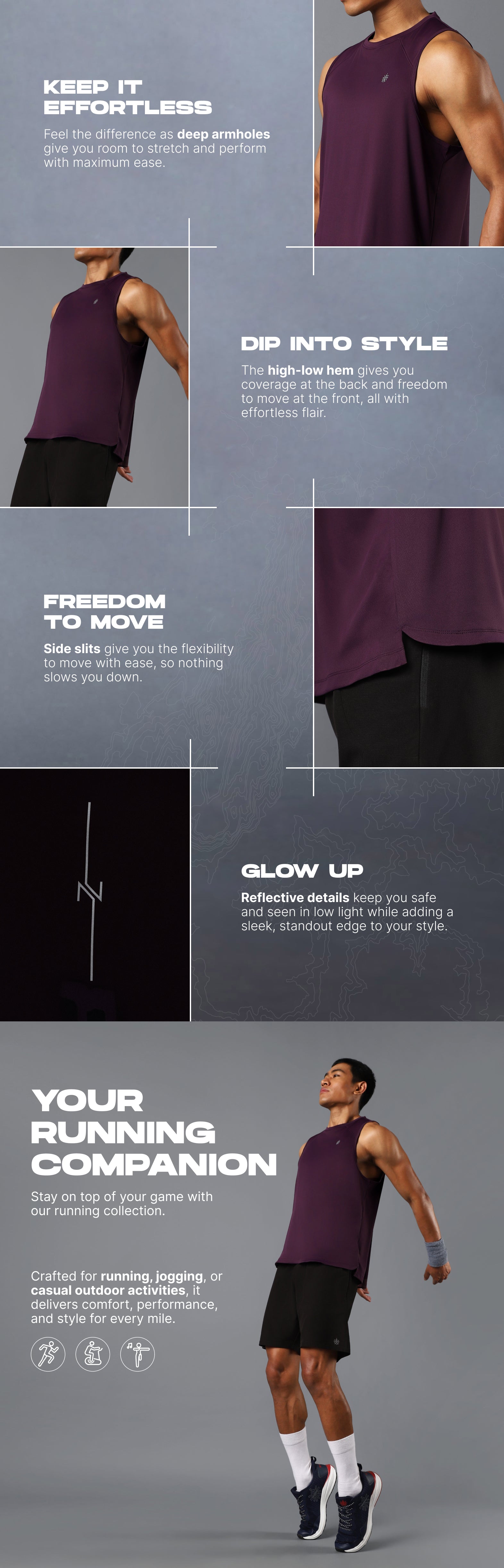 Chase the finish line in total comfort with the Men's Wine Everyday Run Tank. Stay cool and dry with FLY-DRY™ tech, designed to keep sweat in check. Soft to the touch, the hyper soft fabric ensures lasting comfort through every run. The deep armholes allow unrestricted movement, while the high-low hem adds extra coverage for a confident stride.