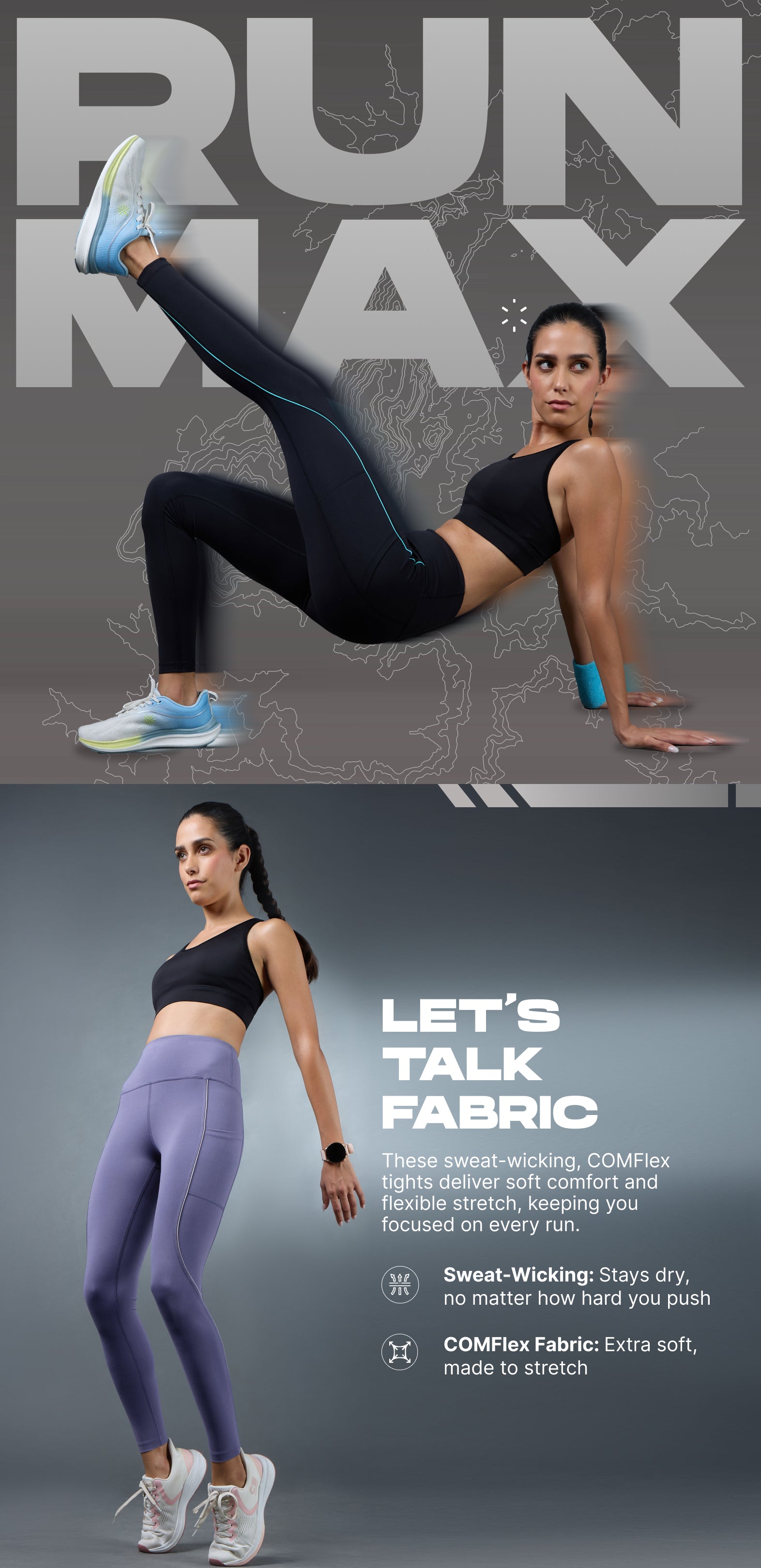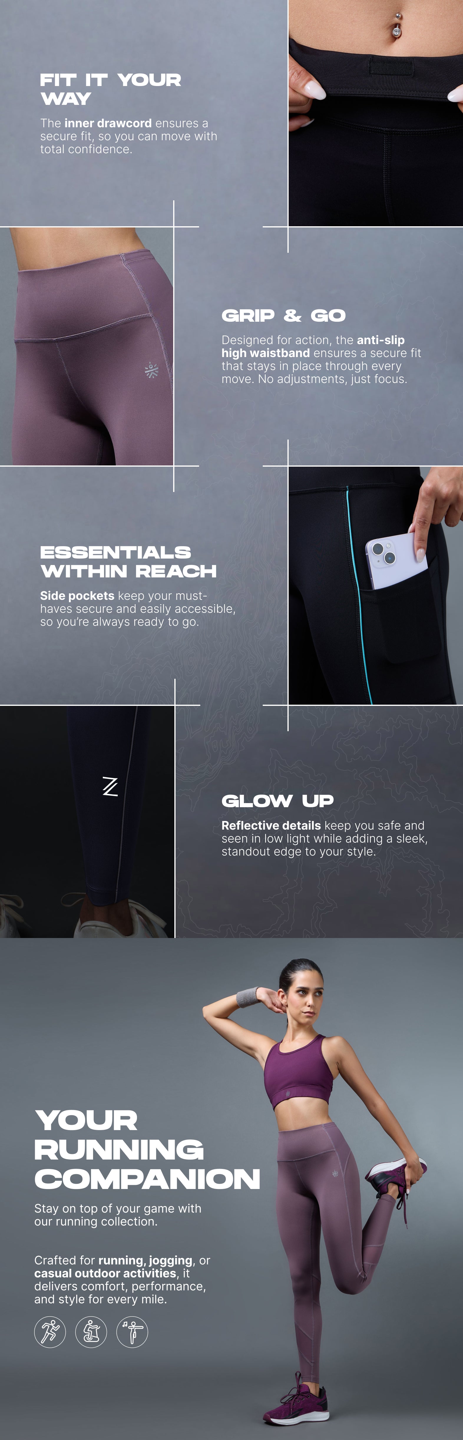 Power through every mile in the Women's Black Pace Up Running Tights. Crafted with FLY-DRY™ tech, they wick away sweat to keep you dry and comfortable. The multi-stretch fabric moves with you, while the anti-slip high waist provides a secure fit. The two side pockets keep essentials handy, while the inner drawcord offers extra support.. The reflective print enhances visibility for low-light runs.