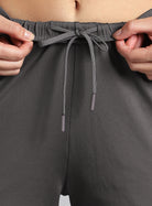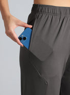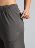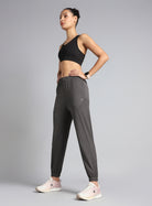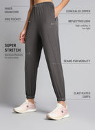 Run easy and stay focused with the Women's Dark Grey Pace Up Jogger, built for performance and comfort. Made from FLY-DRY™ super stretch fabric that wicks away sweat to keep you cool while moving freely. Designed with an elasticated waistband and inner drawcord for a secure fit. The side pockets include one zipper pocket to secure your essentials and one open pocket for quick access. The reflective details enhance low-light visibility, while the elasticated cuffs keep the fit snug through every stride.