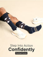 ALL-DAY COMFORT: Crafted from a soft cotton-blended and sweat absorbent fabric, these socks give you an ultra-soft feel and keep your feet dry even through every stride. ENGINEERED FOR SUPPORT: Designed for athletes in motion, these socks feature midfoot compression for a secure fit and enhanced arch support. STRUCTURED FOR PERFORMANCE: Stay focused on your game with a strong ribbed structure and 4-way stretch that offers a firm hold around the calves for anti-slip grip. ZERO IRRITATION: Reinforced toe stitching enhances durability and maintains structure, with zero irritation and smooth finish. PACK OF 2: Comes in a pack of 2 with multicolour options, these knee-length football socks are designed for high performance and comfort.