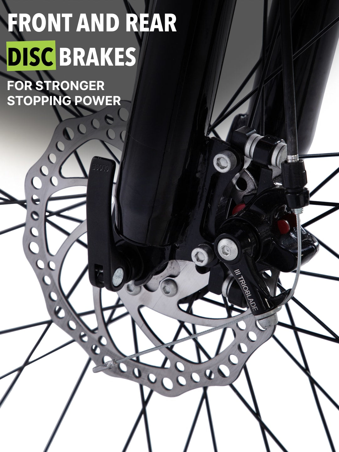 The High-quality double disc brakes on both front and rear wheels ensure stable and quick braking. The disc brakes help you navigate safely during challenging situations such as a crowded market || The bike comes packed with light and strong double walled alloy rims along with 27.5 inches wide tyres that supports comfortable riding and a major performance advantage on the road.|| Easily adjustable saddle height and an attractive grip offer superior comfort and well cushioned ride. The seat height can be adjusted without using any tools || Made from high quality steel frame these bikes are durably made to long last offering you excellent service life. Enjoy a quick ride to your work space, neighborhood rides, or trails on this Cultsport Dauntless || Made of high quality material, sturdy, durable tires with strong grip which can provide strong road support and durability to ensure stable and flexible cycling || With a fierce, aggressive design, front suspension and front/rear handbrakes, the Stone Mountain is ready for epic outdoor fun || 1 Year Warranty On Frame and 6 months Domestic Warranty on Manufacturing Defects