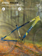 DAUNTLESS29TYELLOWBLUE Steel Single Speed 29 inch Mountain Cycle, Dual Disc Brake, Front Suspension, Double Wall Rim
