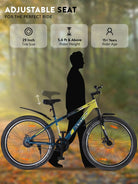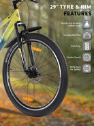 The High-quality double disc brakes on both front and rear wheels ensure stable and quick braking. The disc brakes help you navigate safely during challenging situations such as a crowded market.|| The bike comes packed with light and strong double walled alloy rims along with 29 inches wide tyres that supports comfortable riding and a major performance advantage on the road.|| Easily adjustable saddle height and an attractive grip offer superior comfort and well cushioned ride. The seat height can be adjusted without using any tools.|| Made from high quality steel frame these bikes are durably made to long last offering you excellent service life. Enjoy a quick ride to your work space, neighborhood rides, or trails on this Cultsport Dauntless || The front suspension provides stability to the bicycle and can absorb any bumps and dips encountered on your path for a smoother ride . It also provides strong pedal powers for strong acceleration on straight surfaces and uphill climbs || Made of high quality material, sturdy, durable tires with strong grip which can provide strong road support and durability to ensure stable and flexible cycling