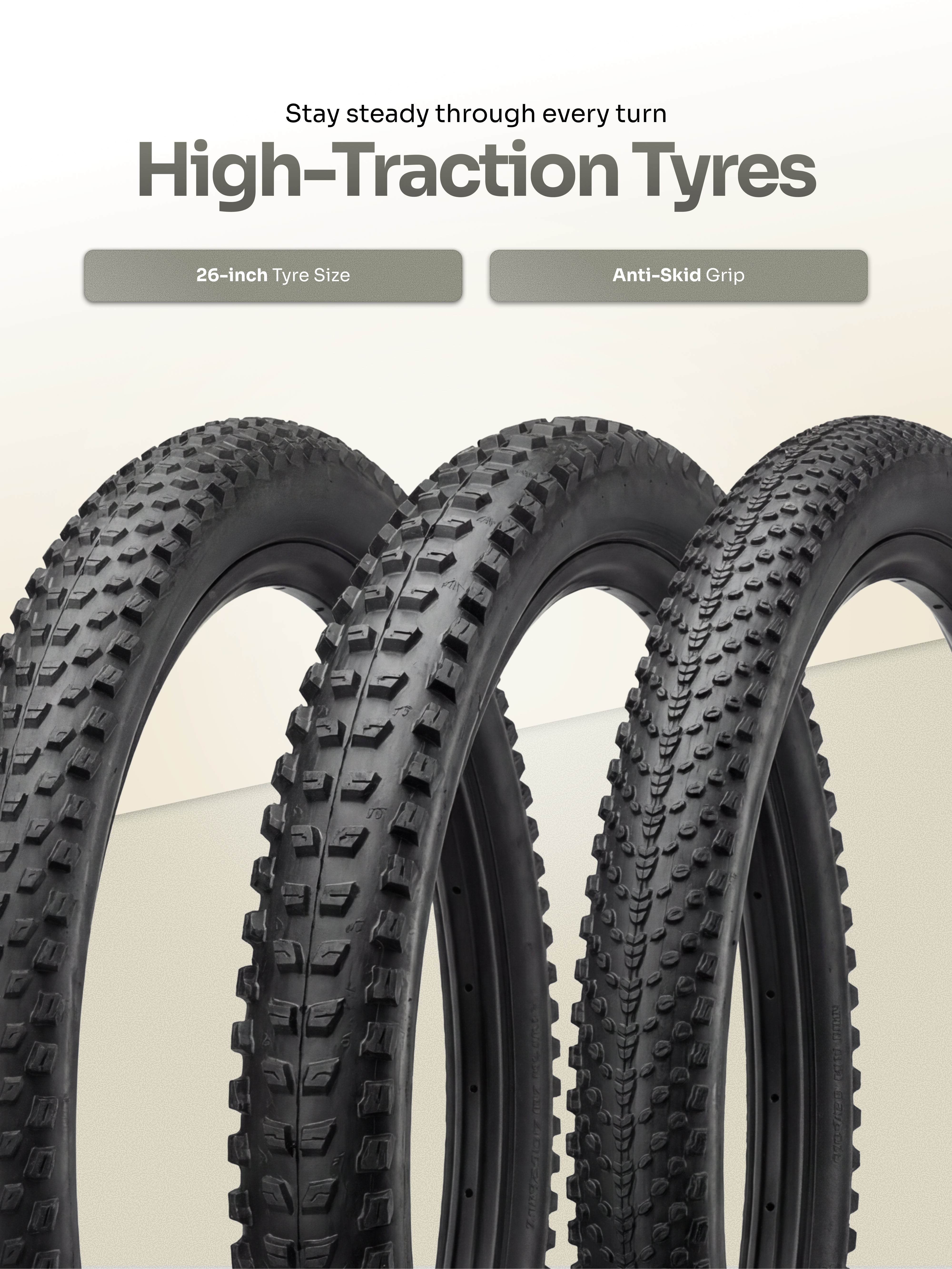 Premium Disk brakes in both front and rear wheels provide maximum safety. The cycle will be delivered in 95% assembled condition.|| The bike comes packed with light and strong single walled steel rims along with 26 inches wide tyres that supports comfortable riding and a major performance advantage on the road.|| Easily adjustable saddle height and an attractive grip offer superior comfort and well cushioned ride. || Made from high quality steel frame these bikes are durably made to long last offering you excellent service life. Enjoy a quick ride to your work space, neighborhood rides, or trails on this Urban Terrain Comet || This product is brought to you by the cult
