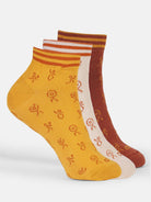 Casual Ankle Length Pack of 3 Mustard,Off White & Rust Patterned Women's Socks