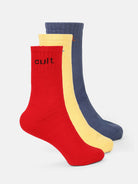 Sports Crew Length Red,Yellow & Blue Pack of 3 Men's Cotton Socks