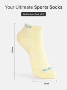 Sports Low Ankle Length Terry Pack of 3 Sea Green,White & Yellow Socks Women