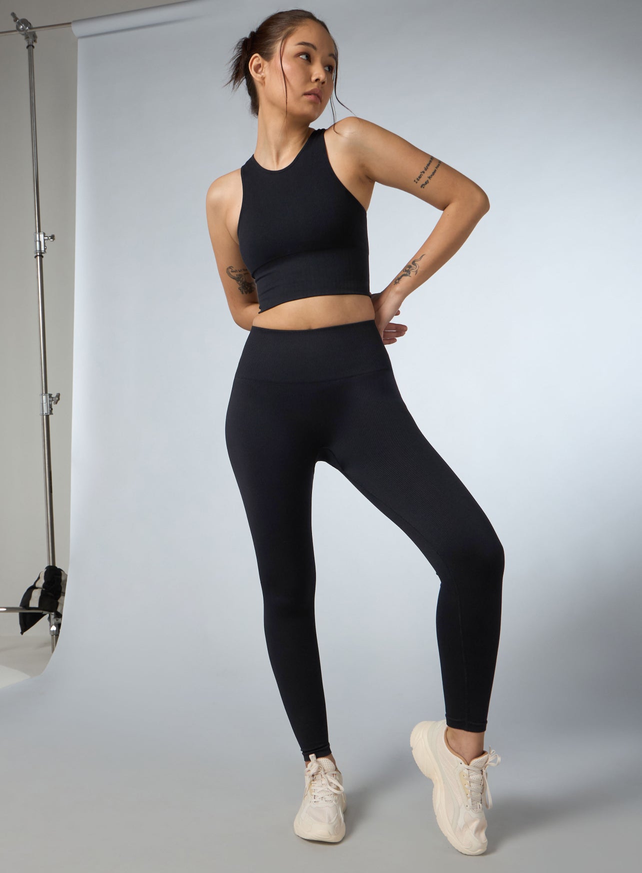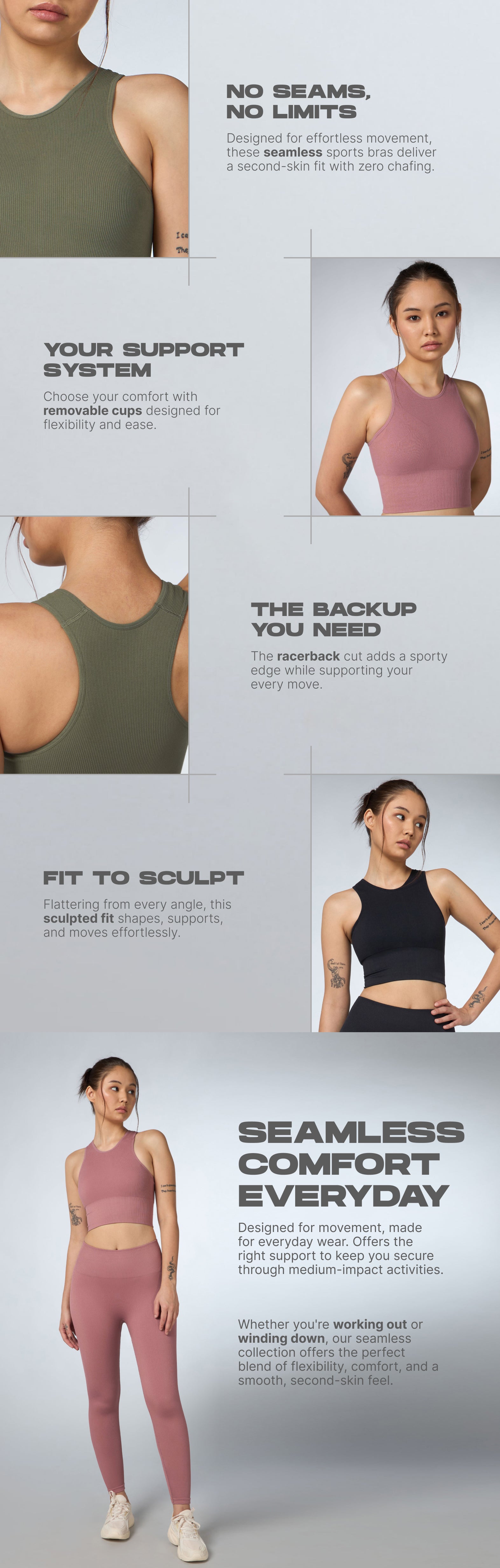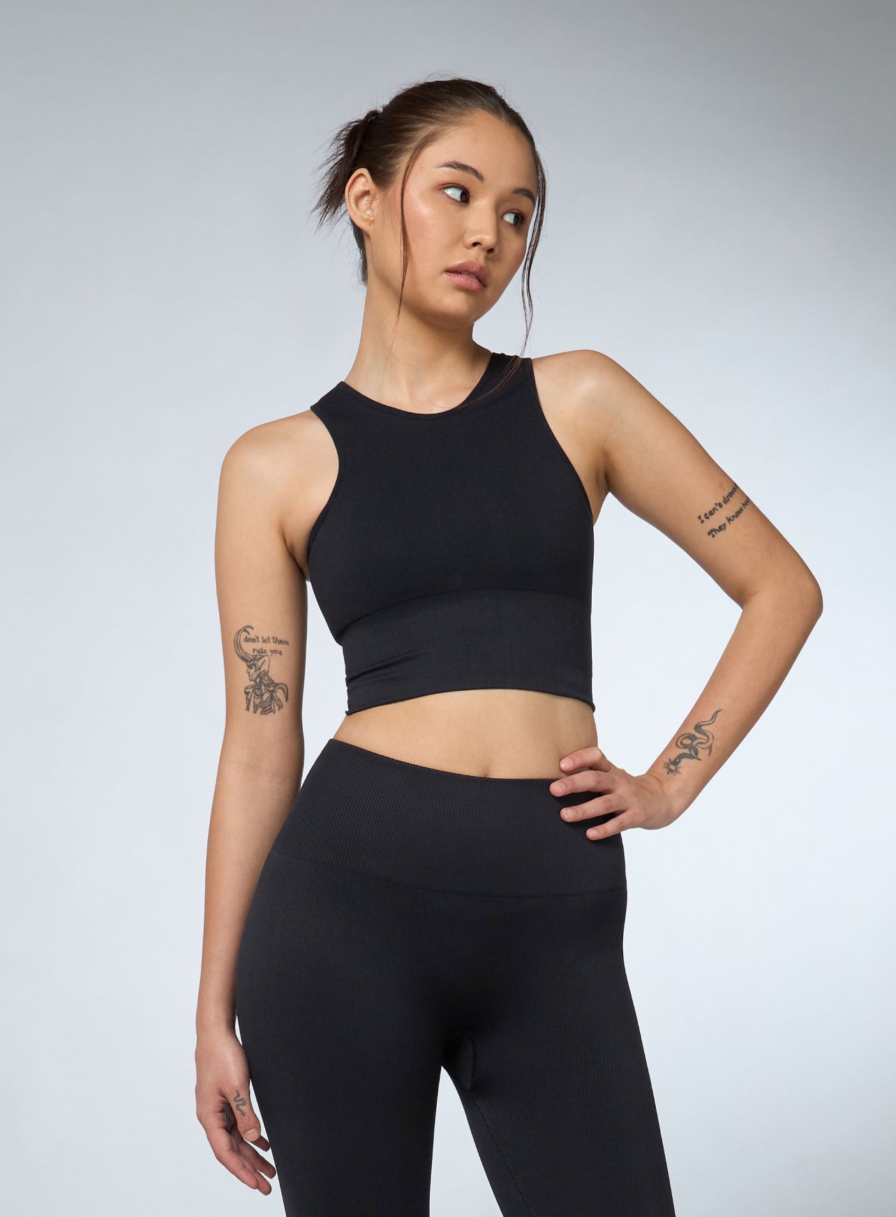 Women's Black Versatile Cropped Top Seamless Medium Support Bra
