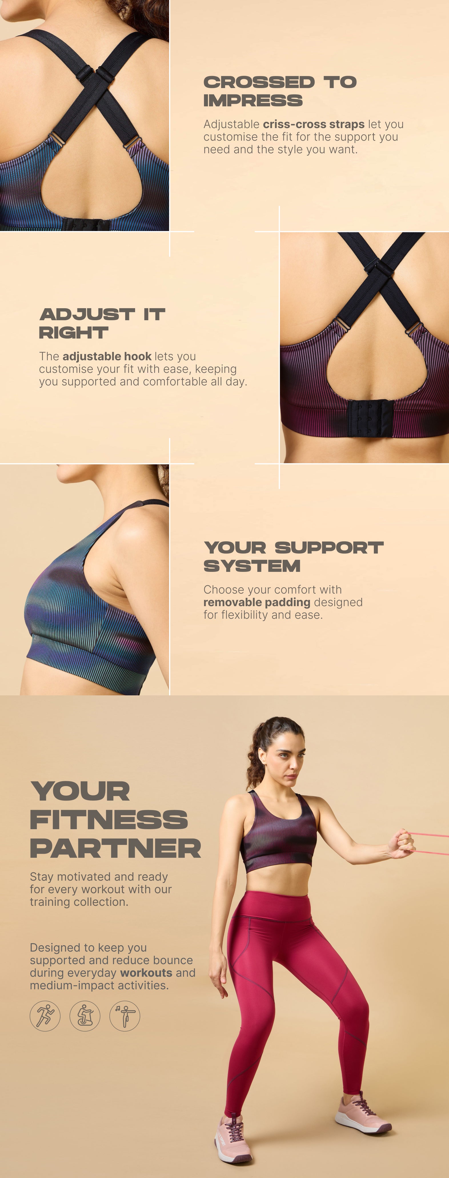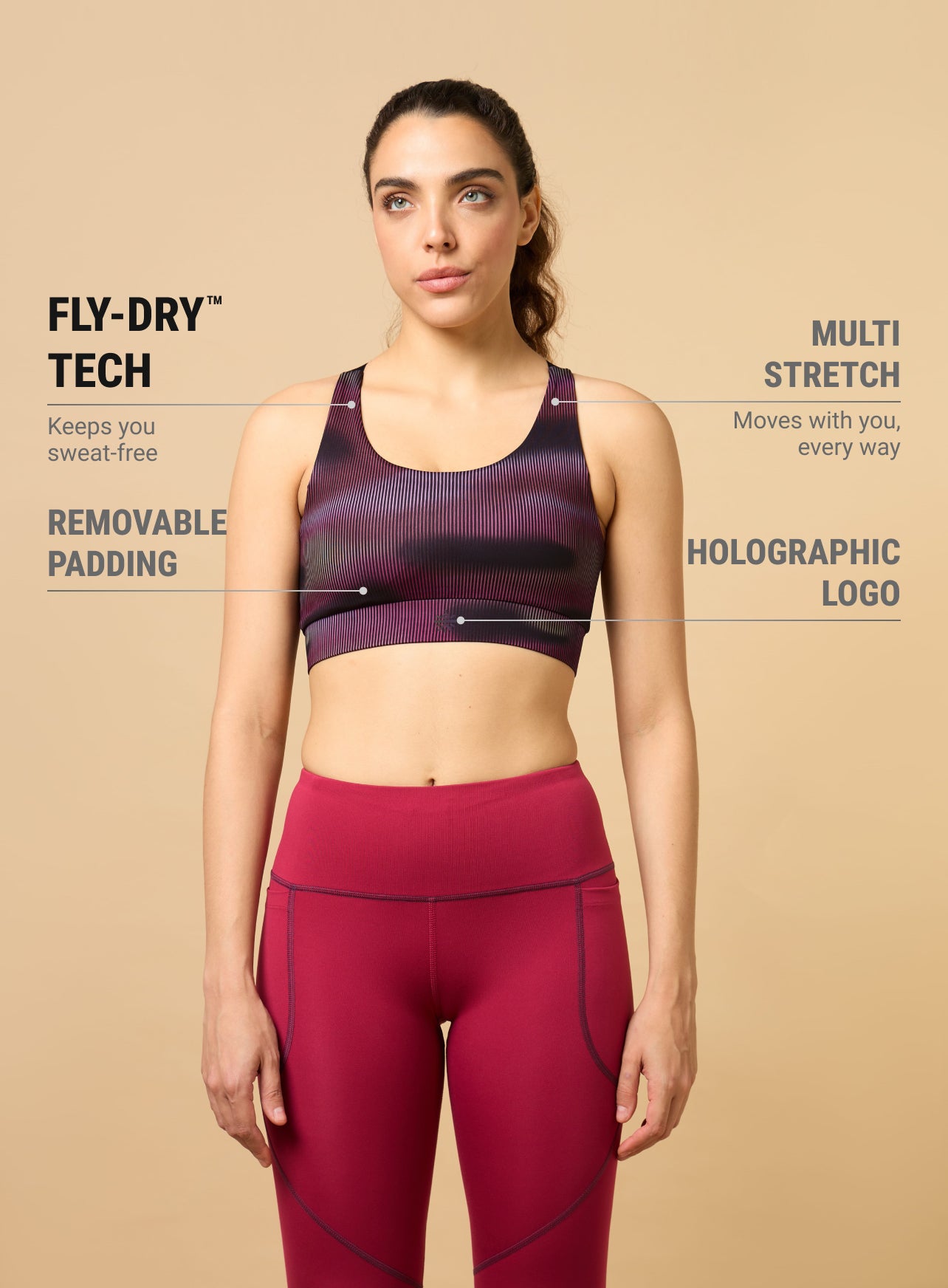 Get the perfect blend of style and support with this Women's Energy Map All Over Print High Support Bra. Crafted with FLY-DRY™ tech, it wicks away sweat to keep you dry and focused. The multi-stretch fabric ensures a flexible fit. Removable cups offer customisable coverage, while the adjustable hook ensures a secure feel. Designed with a criss-cross back for a stylish touch, these are perfect for workouts or everyday comfort.