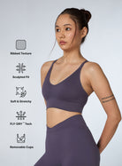Go with the flow in the Women's Purple Cross Fit Seamless Medium Support Bra. The soft & stretchy fabric feels light on your skin and allows unrestricted movement, while FLY-DRY™ tech ensures smooth comfort, while keeping you sweat-free. The ribbed texture adds a sculpted look, and the removable cups provide personalized support.