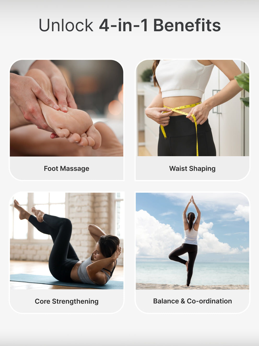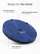 STRONG AND LIGHTWEIGHT: Compact and easy to carry, the sturdy design supports up to 85 kg — ideal for everyday use without taking up much space. SECURE GRIP AND NON-SLIP BASE: Stay steady and safe through every move with the anti-slip surface and a non-skid bottom that keep the platform firmly in place. 360° ROTATION WITH SMOOTH GLIDE: Smooth, controlled twists that support low-impact workouts, powered by a built-in ball-bearing mechanism. 4 BENEFITS IN ONE TWIST: More than just waist shaping, this tummy twister helps improve balance, coordination and core strength — all while offering a gentle foot massage with every rotation. LOW-MAINTENANCE AND EASY TO CLEAN: Simple to wipe down and store, making it a clean, fuss-free addition to your indoor or outdoor workouts.