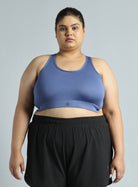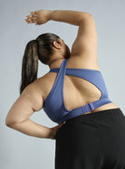 Women's Blue Cross Back Hook Training High Support Plus Size Sports Bra