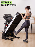 The Smartrun Canoas 2.75 HP continuous & 5.5 HP Peak Treadmill is an exceptional fitness equipment designed to offer a convenient and effective way to stay active and achieve your fitness goals. Whether you prefer walking, jogging, or running, the treadmill can accommodate various speeds and intensity levels to suit your fitness level and preferences. In terms of design, the treadmill is compact and foldable, making it ideal for storage in smaller spaces. It also features built-in transportation wheels, ensuring easy mobility and allowing you to move the treadmill effortlessly within your home as needed. You are advised to buy/install a voltage stabilizer with the treadmill to protect the motor from power fluctuations and ensure its long life. Additionally, please connect the product to a power point with adequate earthing to ensure discharge of excess current.