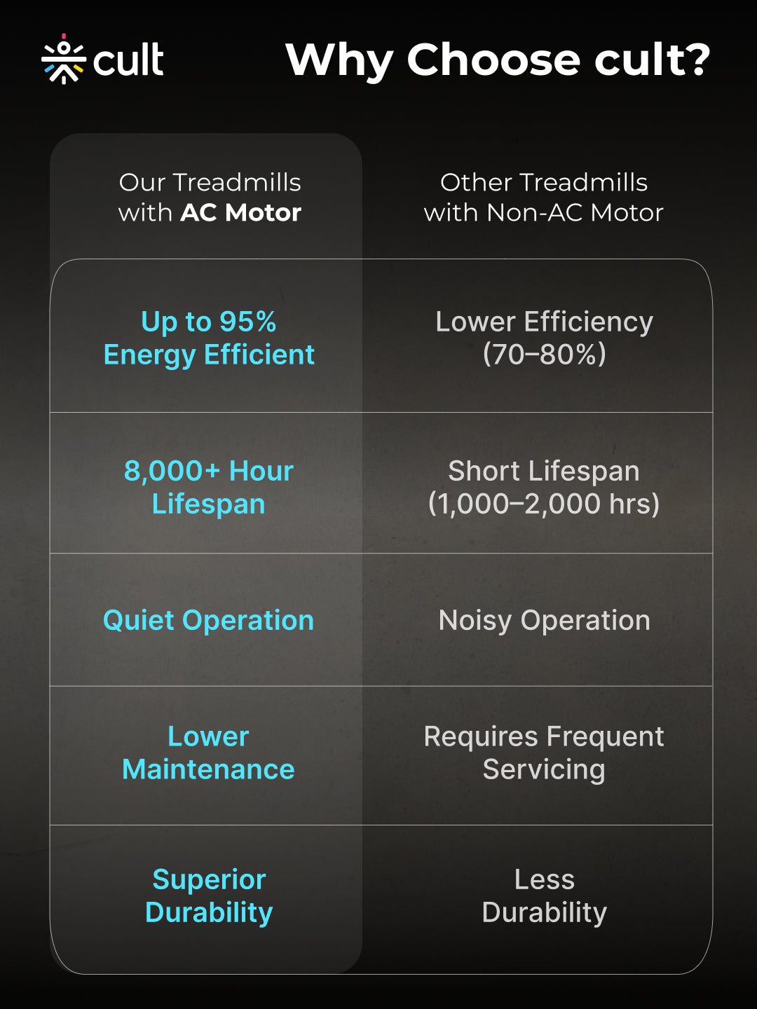 Cult SmartStrideElite Brushless AC Motor (8HP Peak) Treadmill | Max Weight: 150kg | 20 Level Auto Incline (with 6 months extended warranty)