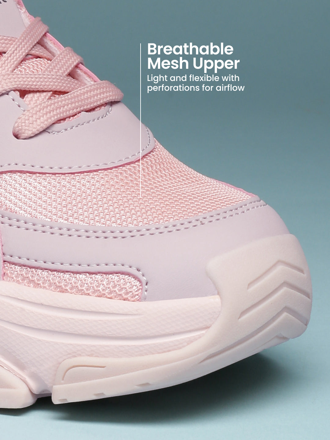 Step into style and comfort with the Cult Women's Sneakers, designed to keep up with your every move. The lightweight mesh upper with PU panels and smartly placed perforations keeps your feet cool while adding just the right amount of structure, making them perfect for everything from long walks to busy days on the go. Inside, the padded interiors and cushioned PU foam insoles wrap your feet in softness, giving you lasting comfort no matter how high your energy runs or how low your downtime dips. The chunky yet lightweight EVA midsole absorbs impact with every step, making your stride smoother and easier, while the high-traction TPR outsole delivers a secure grip that’s both durable and dependable. Whether you’re heading to college, powering through the office, or elevating your everyday look with a touch of fashion, these sneakers are your go-to pair for every look.
