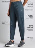 Hit every stride in style with the Women's Deep Teal Running Essential Joggers, made for all-day comfort and speed. Powered by FLY-DRY™ tech, the fabric wicks away sweat to keep you cool and focused. The super stretch material supports fluid movement, while the seams enhance mobility through long runs. The elasticated waistband with inner drawcord delivers a secure fit, and the side pockets keep essentials close.