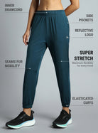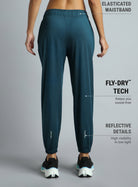 Chase every goal in the Women's Navy Night Joggers—designed to power your pace and your style. Crafted with FLY-DRY™ tech and super-stretch fabric, they keep you dry, cool, and ready to move. The elasticated waistband and inner drawcord offer a secure, adjustable fit. The strategically placed seams support easy mobility, while the side pockets add functional storage. The elasticated cuffs ensure a snug fit, and the reflective logo adds visibility.