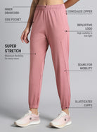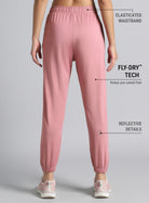 Run easy and stay focused with the Women's Pink Pace Up Joggers, built for performance and comfort. Made from FLY-DRY™ super stretch fabric that wicks away sweat to keep you cool while moving freely. Designed with an elasticated waistband and inner drawcord for a secure fit. The side pockets include one zipper pocket to secure your essentials and one open pocket for quick access. The reflective details enhance low-light visibility, while the elasticated cuffs keep the fit snug through every stride.