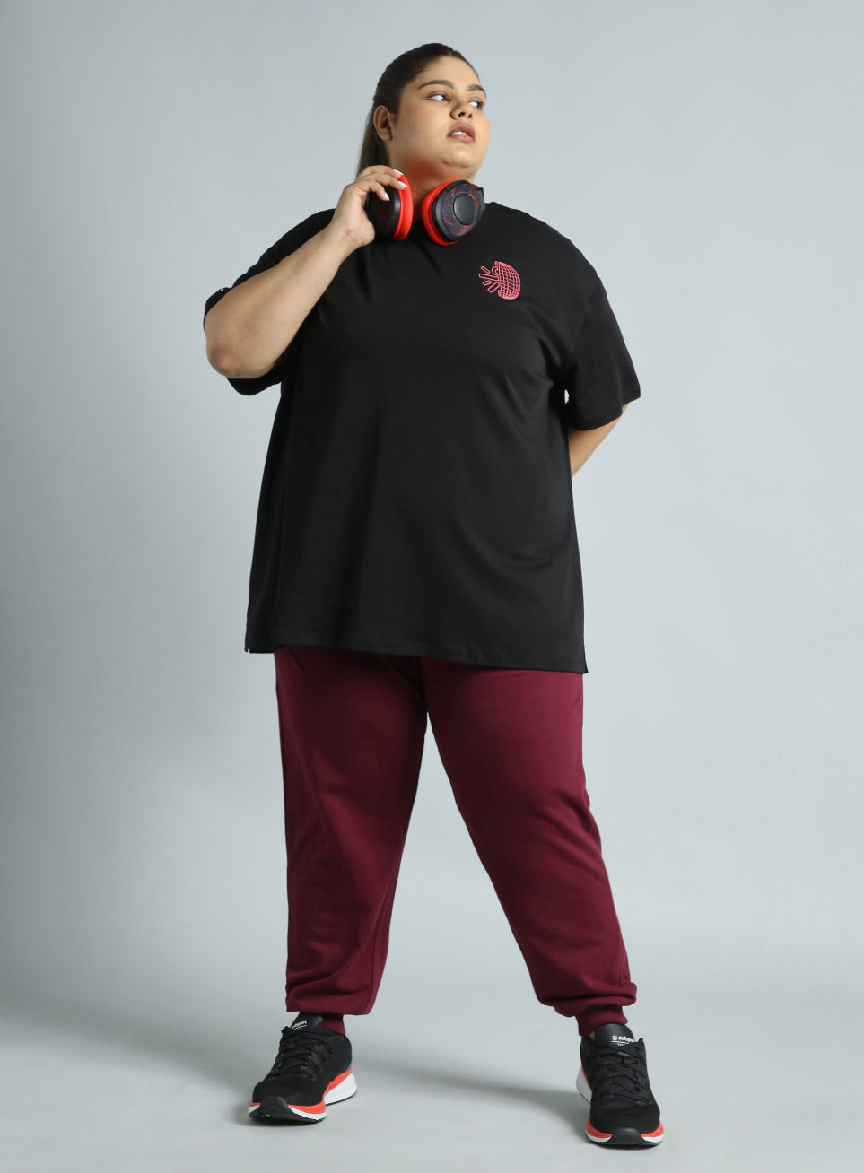 Keep it classy with the Women's Black Cult Graphic Cotton Plus Size Oversized Fit T-shirt, designed for effortless comfort. Made from super soft fabric that feels gentle on the skin all day. Features a bold graphic print for a standout look and a ribbed neckband for a clean finish. The side slits add easy movement while the oversized fit gives a roomy fit for everyday ease.