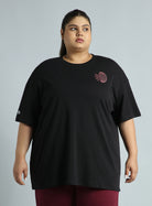 Women's Black Cult Graphic Cotton Plus Size Oversized Fit T-shirt