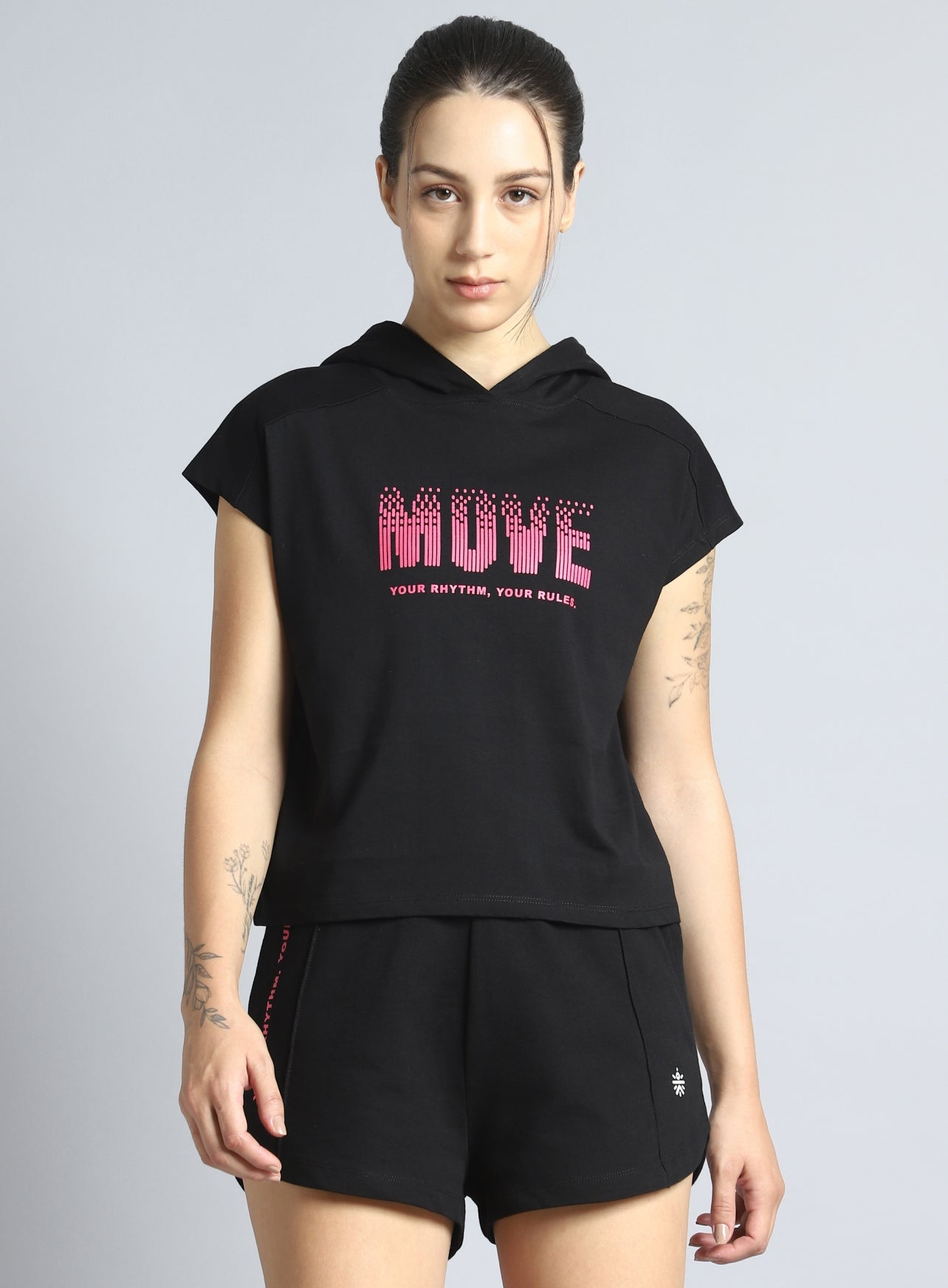 Move freely and express your style with the Women's Black Move it Hoodie Top. Made from super-soft fabric, it feels smooth and gentle against the skin. The boxy crop fit offers a relaxed feel, while the bold chest print on the hood adds a statement to your look. Perfect for all your dance sessions.