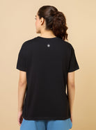 Stay effortlessly stylish in this Women's Black Play in Leisure T-shirt, designed for all-day comfort. Made with super-soft 100% cotton fabric for a soft, breathable feel. Features a relaxed fit that gives an laid-back look, while the bold graphic print adds a statement touch. The ribbed neckband adds a classic finish, making it a go-to for everyday wear.
