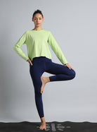 Embrace comfort and style with the Women's Lime Yoga Flow Full Sleeve Top. Made from super-soft fabric, it feels smooth and gentle against the skin. Featuring raglan sleeves for added flexibility and overlap panels for a flattering fit, it’s perfect for yoga and beyond. Crafted with textured fabric that adds a refined touch for a standout look.