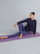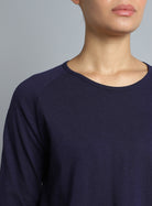 Embrace comfort and style with the Women's Navy Yoga Flow Full Sleeve Top. Made from super-soft fabric, it feels smooth and gentle against the skin. Featuring raglan sleeves for added flexibility and overlap panels for a flattering fit, it’s perfect for yoga and beyond. Crafted with textured fabric that adds a refined touch for a standout look.