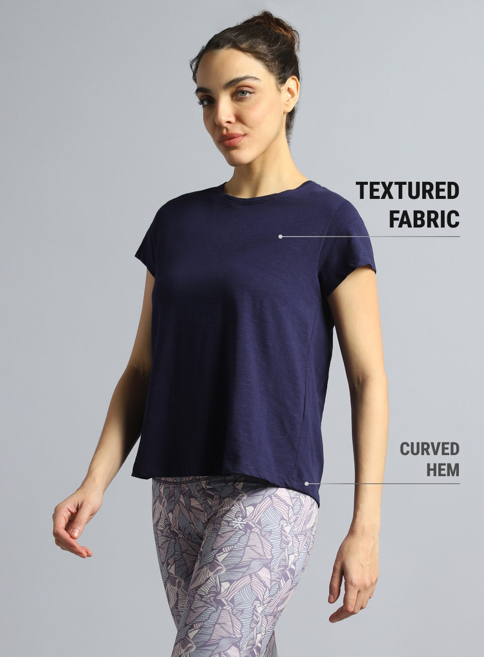Flow with ease in the Women's Navy Yoga Flow Top, designed to keep you comfortable throughout your practice. Made from super-soft fabric, it feels smooth and gentle against the skin. The flared fit offers a relaxed silhouette for unrestricted movement, while the curved hem adds a flattering touch to your flow. Crafted with textured fabric that adds a refined touch for a standout look.