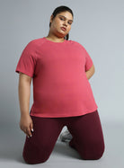 Power through your workout in the Women's Pink Flex Plus Size COMFORtech Regular Fit T-shirt—made to move with you, not against you. The ultra-soft COMFORtech™ fabric offers absolute comfort for everyday ease. The raglan sleeves and side slits give you total freedom to flex, lift, and move with confidence. The contrast stitching adds a bold finish to your training look.