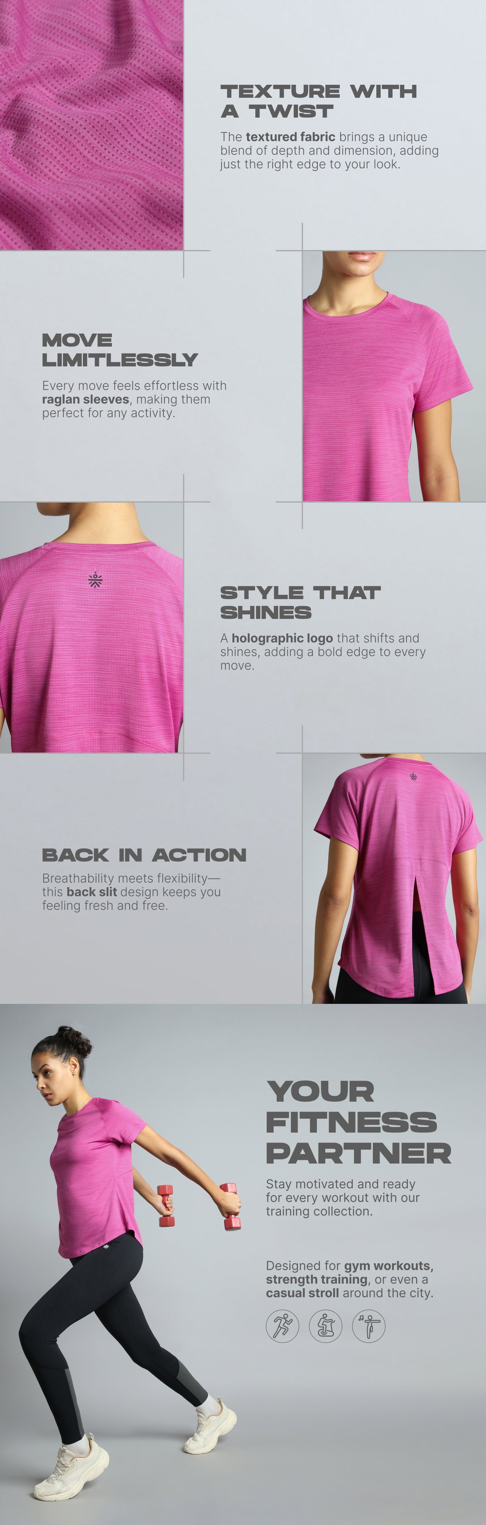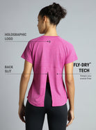 Breeze through your workouts in the Women's Pink Flow HIIT Top—built for stretch, style, and serious comfort. Crafted from hyper-soft, textured fabric, it delivers a smooth feel with lightweight comfort. FLY-DRY™ tech wicks away sweat to keep you cool and dry. The back slit and breathable panels enhance airflow to keep you cool. The raglan sleeves support free movement, and the holographic logo adds a sleek, standout detail.