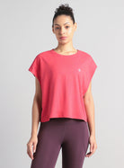 Push your limits in the Women's Pink Muscle Flex COMFORtech™ T-shirt built for comfort and performance from warm-up to cooldown. The COMFORTECH™ fabric delivers an ultra-soft, odour-free feel that keeps you focused through every rep. The textured fabric elevates the look with a subtle, sporty finish that feels as good as it looks. The deep armholes let you stretch without restriction, while the boxy mid crop fit gives it a sharp, athletic edge.