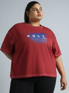 Women's Red Training Essential Graphic Plus Size Boxy Fit T-shirt