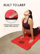 CULT Premium TPE Yoga Mat with Alignment Marks 6mm Thick Non-Slip Exercise & Pilates Mat for Men & Women, Eco-Friendly, Sweat-Resistant with Carry Strap - Red