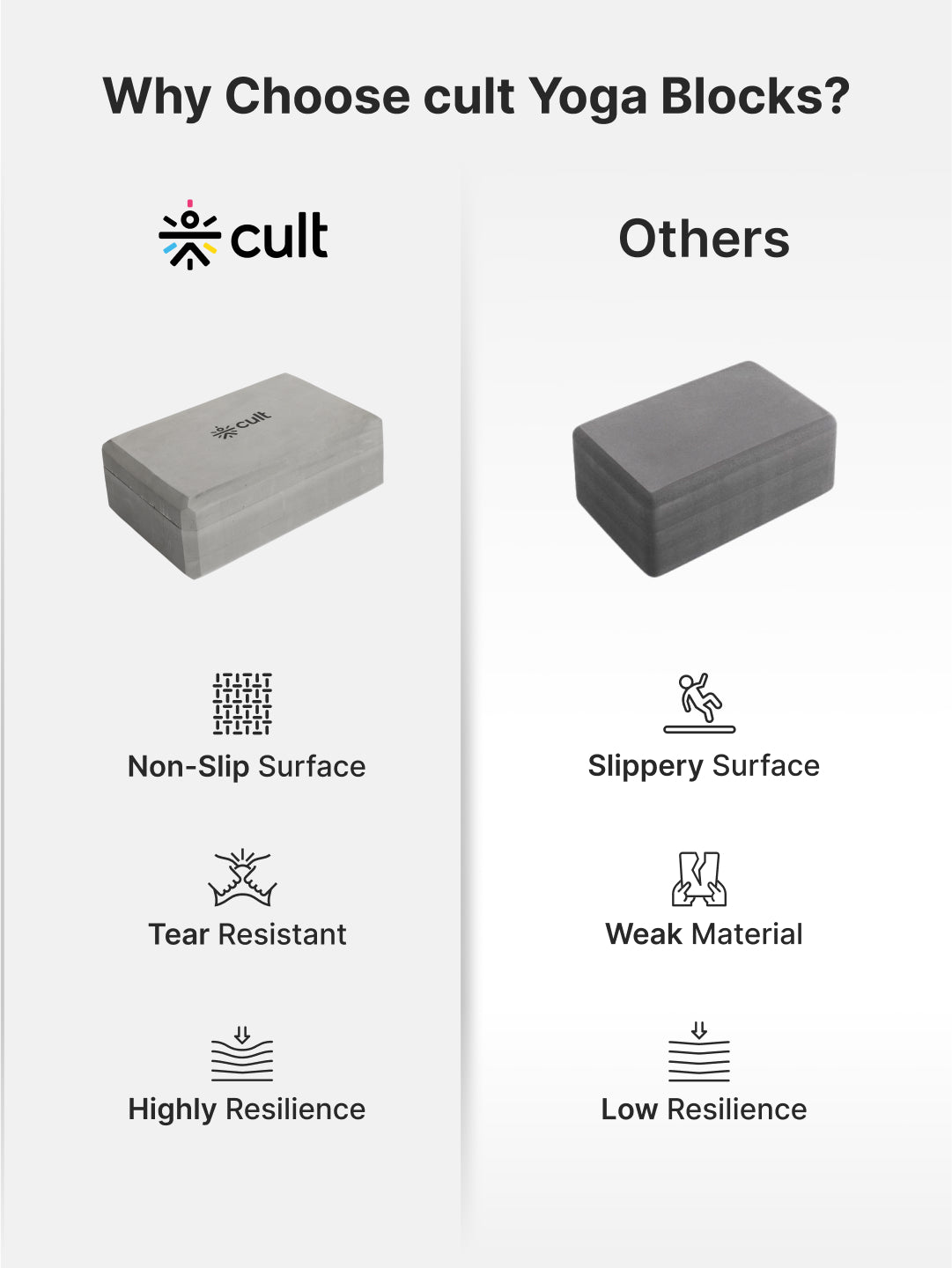 GENTLE ON YOUR SKIN: Crafted from high-quality EVA, these blocks are non-toxic, recyclable, and free from PVC, latex, and harsh chemical smells—making them safe and eco-friendly for daily practice. GRIP THAT KEEPS YOU STEADY: An anti-skid base ensures your blocks stay firmly in place, preventing slips while you stretch, balance, or hold challenging poses. LIGHTWEIGHT & PORTABLE: Designed to be easy to carry, pack, and store, these blocks are perfect for home sessions, studio classes, or fitness on the go. MADE TO LAST : Tear-resistant and built to withstand daily use without cracking or peeling, the smooth, skin-friendly surface is gentle on sensitive skin—ensuring comfort for all users. OPTIMAL THICKNESS FOR BALANCE: With 80 mm thickness, they provide reliable balance and steady support, helping you achieve proper alignment in yoga, pilates, and stretching routines.