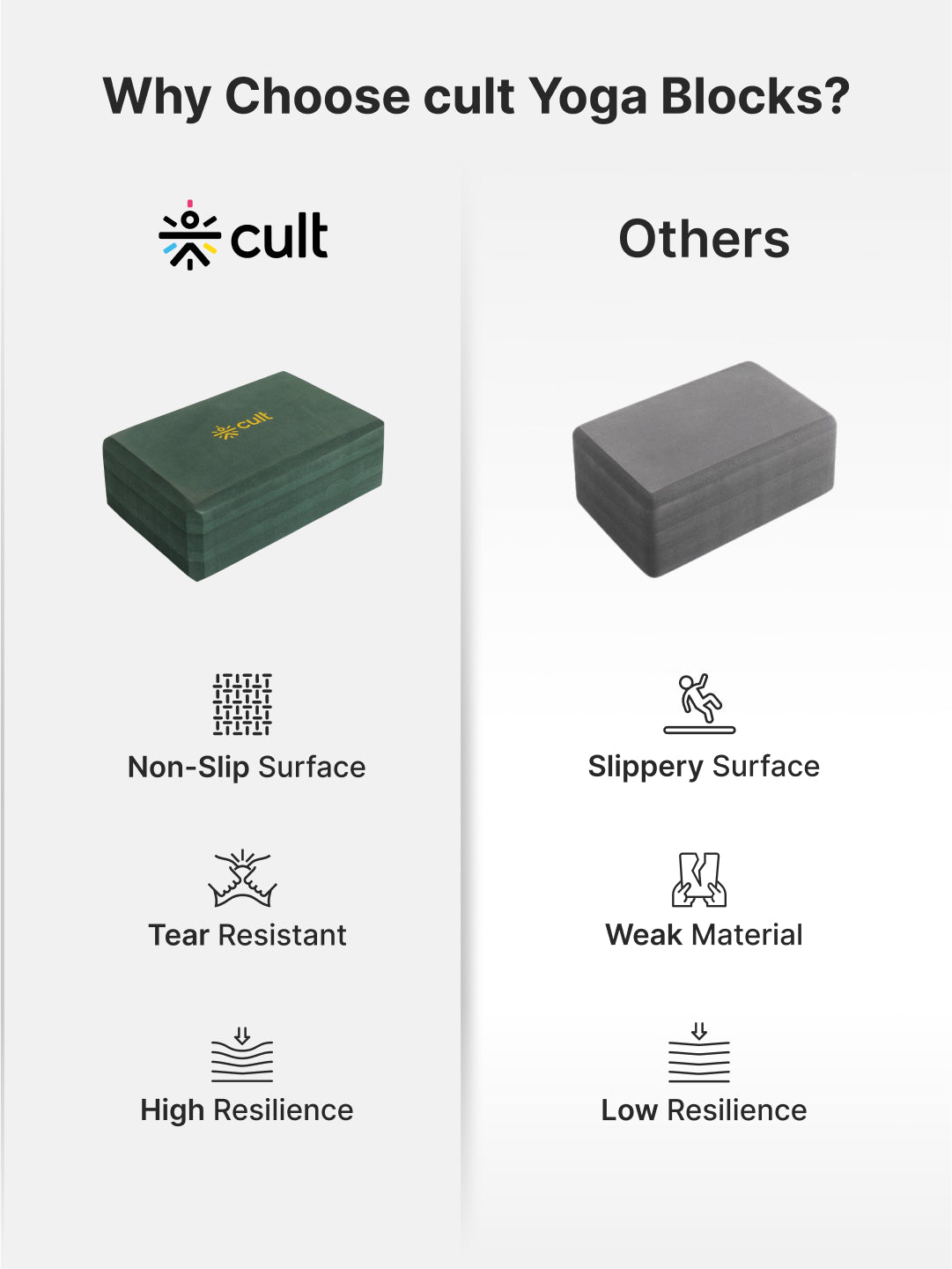 GENTLE ON YOUR SKIN: Crafted from high-quality EVA, these blocks are non-toxic, recyclable, and free from PVC, latex, and harsh chemical smells—making them safe and eco-friendly for daily practice. GRIP THAT KEEPS YOU STEADY: An anti-skid base ensures your blocks stay firmly in place, preventing slips while you stretch, balance, or hold challenging poses. LIGHTWEIGHT & PORTABLE: Designed to be easy to carry, pack, and store, these blocks are perfect for home sessions, studio classes, or fitness on the go. MADE TO LAST : Tear-resistant and built to withstand daily use without cracking or peeling, the smooth, skin-friendly surface is gentle on sensitive skin—ensuring comfort for all users. OPTIMAL THICKNESS FOR BALANCE: With 80 mm thickness, they provide reliable balance and steady support, helping you achieve proper alignment in yoga, pilates, and stretching routines.