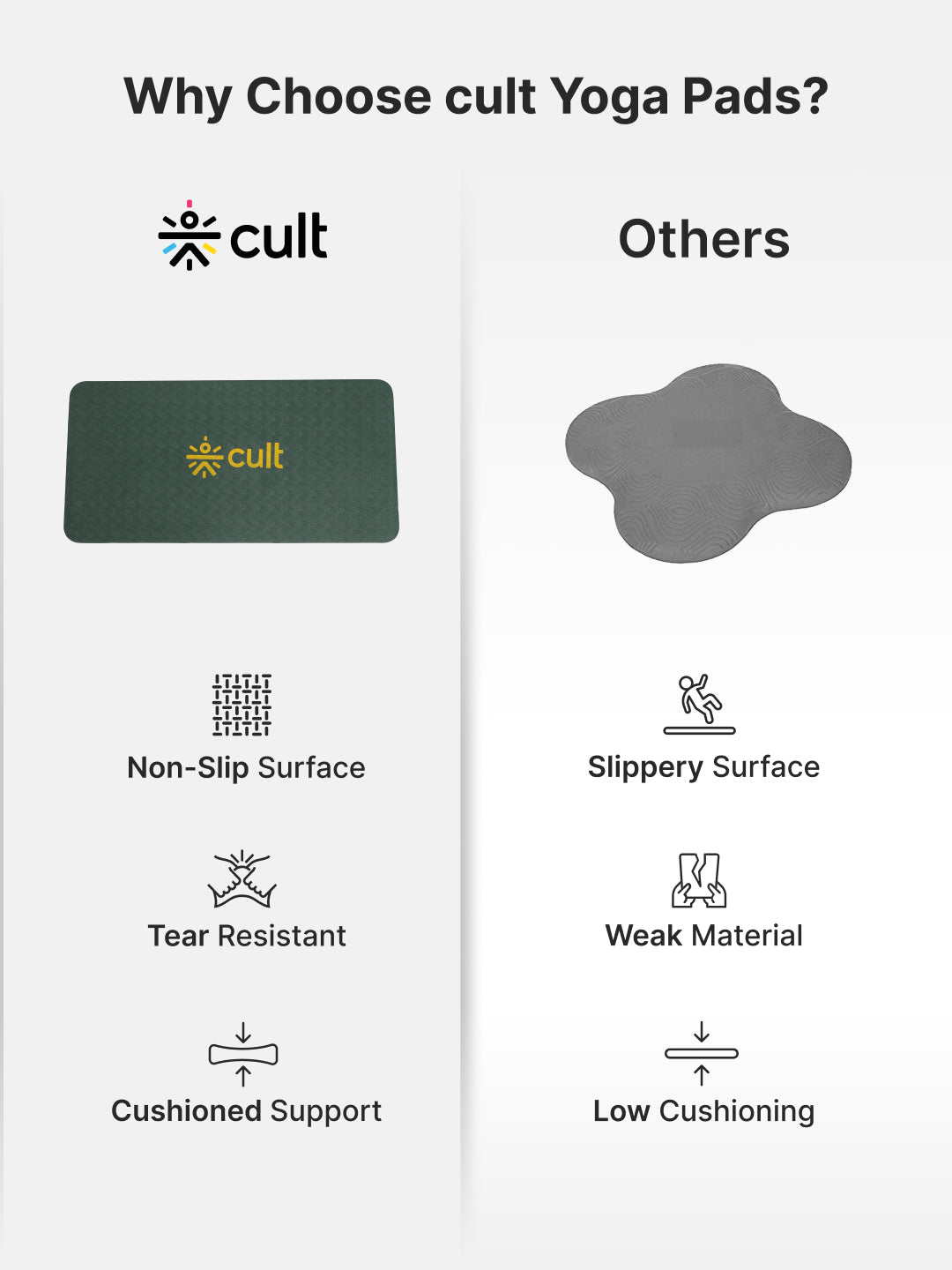 GENTLE ON YOUR SKIN: Made from premium EVA that’s non-toxic, recyclable, and free from PVC, latex, and harsh odors—gentle enough for sensitive skin and safe for all users. SLIP-FREE STABILITY: Designed with an anti-skid base that keeps the pads firmly in place, preventing slips and helping you focus on your flow without distraction. EXTRA SUPPORT FOR ADVANCED POSES: Crafted with 20 mm thickness, these knee pads provide the cushioning you need for challenging postures, ensuring joint protection and steady alignment throughout your practice. BUILT FOR LONG-LASTING USE: Durable and tear-resistant, the EVA build resists cracking, peeling, and wear, giving you reliable performance session after session. LIGHTWEIGHT & PORTABLE: Compact and easy to carry, these pads are perfect for home sessions, studio classes, or fitness on the go—just pack them and you’re ready to practice anywhere.