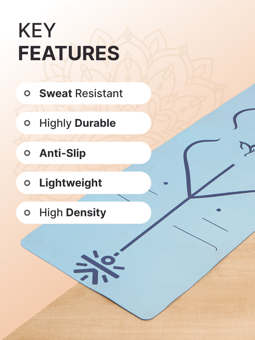 - This vibrant blue alignment mat comes with posture lines and a matching blue yoga wheel—ideal for perfecting form