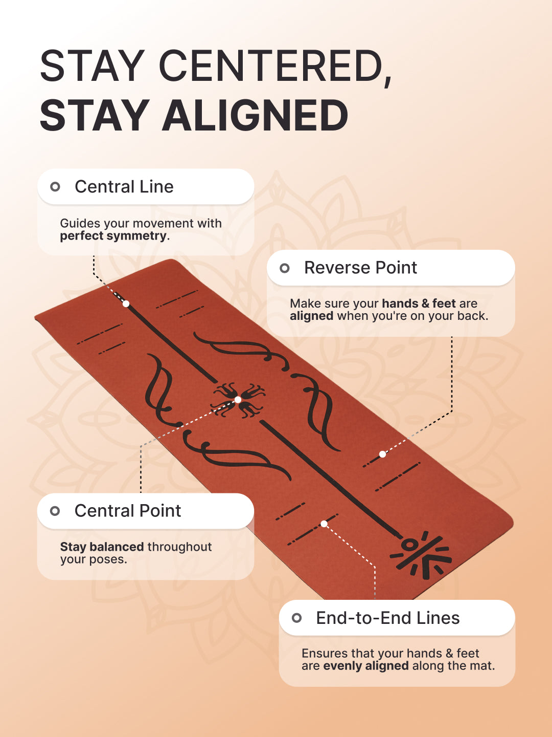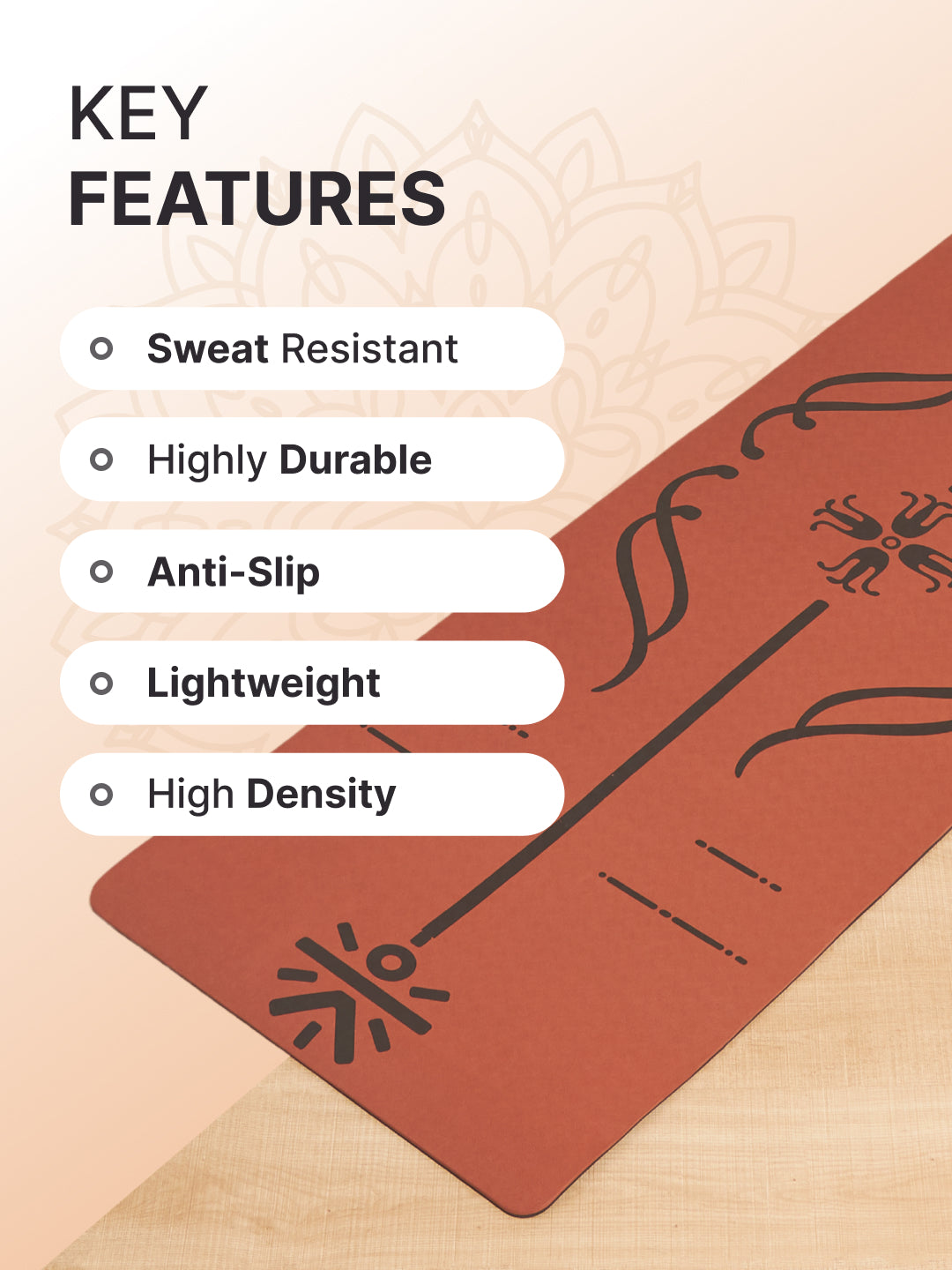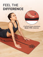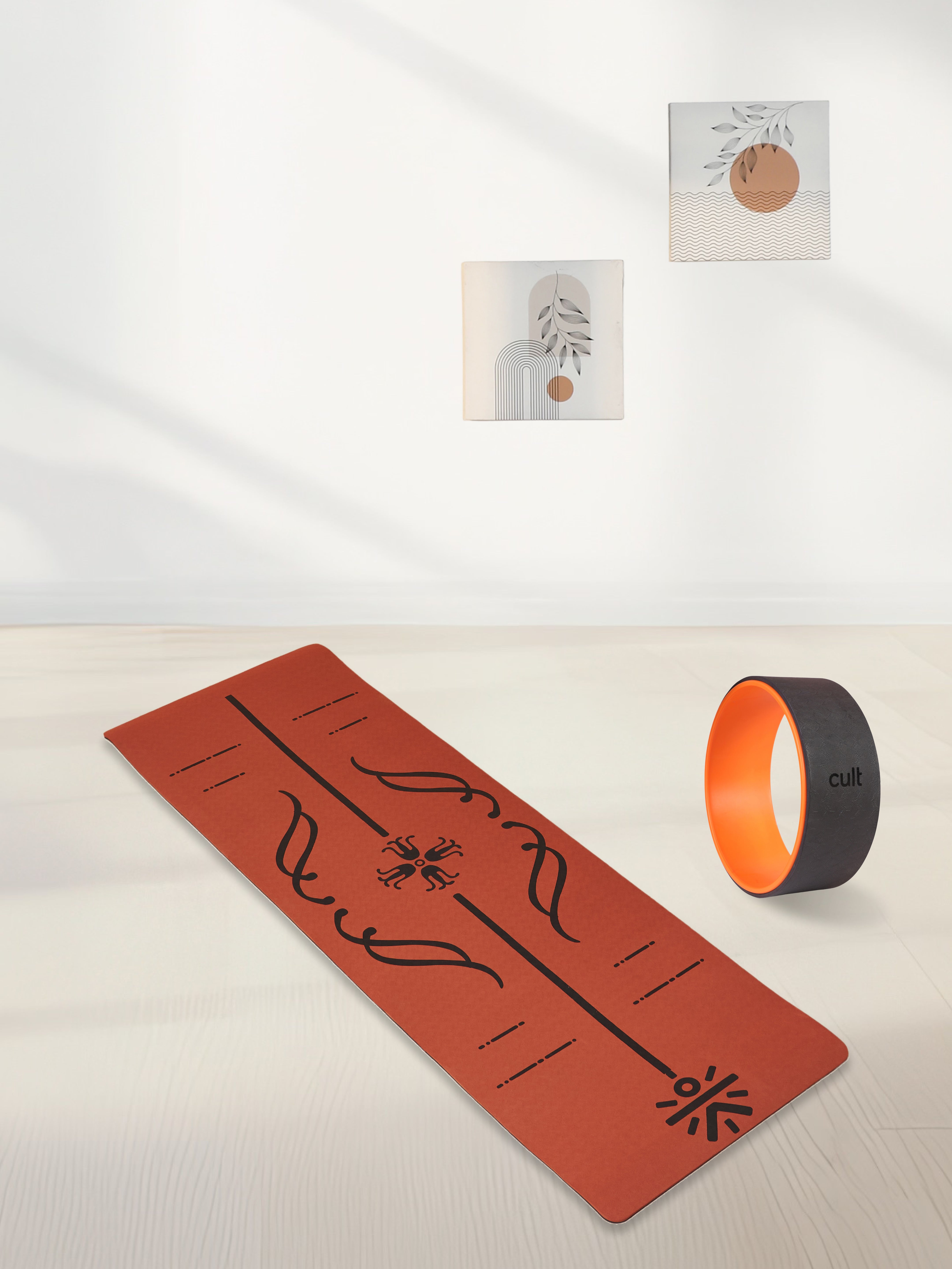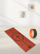 With earthy brick tones and a high-traction surface, this alignment mat comes with a dark grey yoga wheel to aid flexibility and enhance posture control during practice.