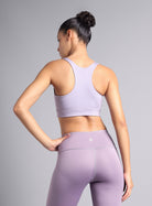 Flow freely and switch up your style with the Women's Purple Reversible Yoga High Support Bra, designed for comfort and versatility. Made from FLY-DRY™ fabric that wicks away sweat to keep you cool and dry. The multi-stretch fabric moves with your body, giving you complete freedom in every pose. The reversible design offers the choice of an all-over print or a solid look. The removable cups provide a customizable fit, while the racerback enhances mobility through every session.