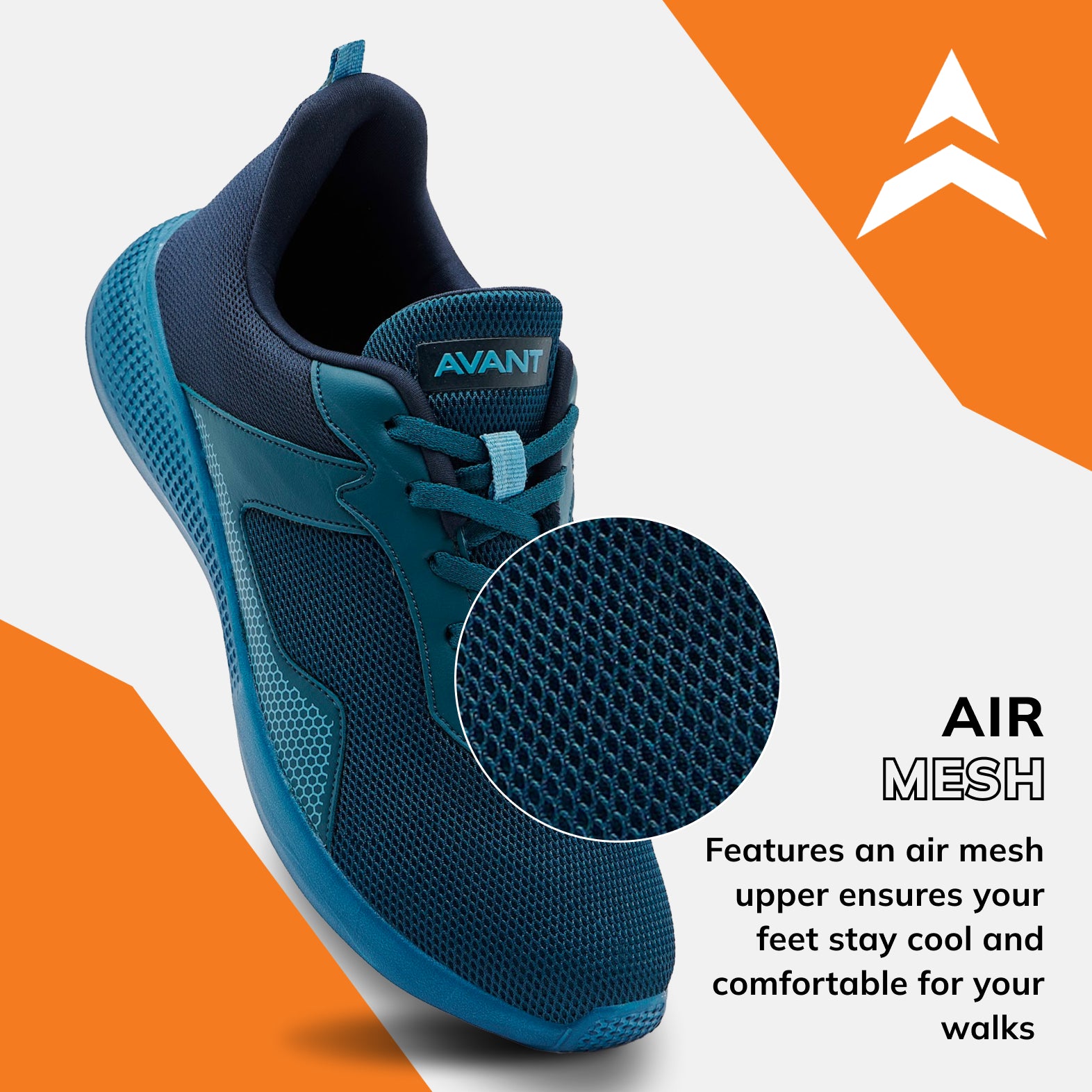 Whether it's morning walk, a trail run, or a morning jog, the Avant Men's Glide Walking Shoes are well-equipped with airiness, enhanced cushioning, and grip. In addition to their breathability, the upper air mesh contributes to the shoe's lightweight nature, making you feel like you are gliding on air.