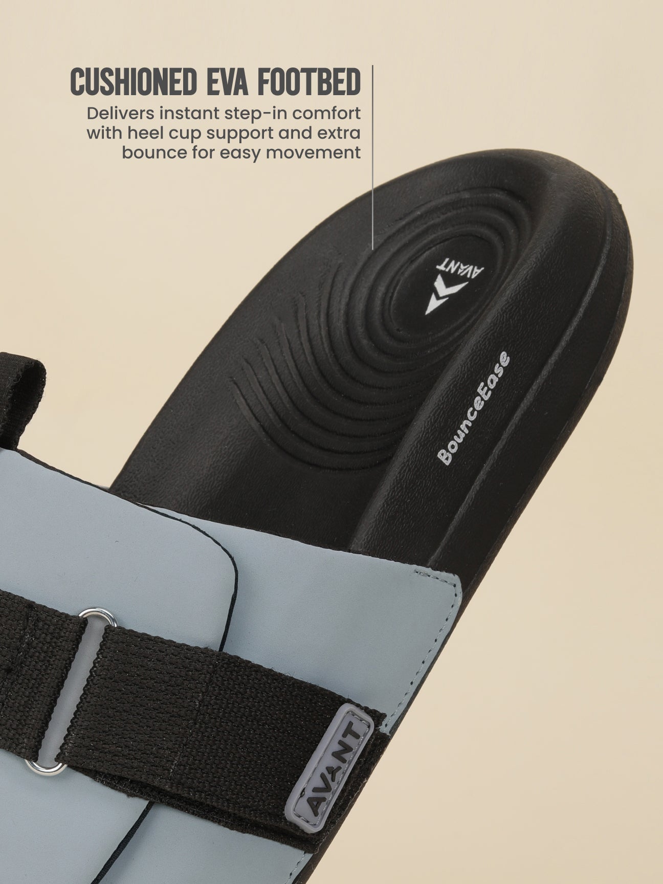 Built for everyday ease, the Avant Men’s PlushStep Sliders keep you comfortable all day. . The cushioned PVC upper features extra bounce and padding, paired with a soft padded strap that gently supports the instep for a plush, pressure-free feel indoors or outdoors. Weighing just 220 g, these sliders stay light on your feet, helping reduce strain during everyday wear. The adjustable velcro strap adapts easily to your foot shape, delivering a secure, personalised fit with easy on–off convenience. Underfoot, the soft EVA footbed provides instant step-in comfort, while the contoured heel cup adds stability and promotes natural foot alignment. Perfect for poolside lounging, beach days, or relaxed summer strolls, these sliders keep your feet comfortable, supported, and ready for wherever the day takes you.