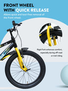 The kids cycle strikes a good balance between size, weight, and features, making it an excellent choice for children who have outgrown smaller bikes . It supports their development as confident riders while ensuring safety and enjoyment during their cycling adventures.|| Ease of Riding: The 20-inch wheel size strikes a balance between stability and maneuverability. It provides enough stability for kids to feel secure while also being nimble enough for them to handle various terrains and riding conditions.|| Growth Potential: Many 20-inch bikes come with adjustable components such as seat posts and handlebars, allowing the bike to grow with the child. This adjustability ensures that the bike remains comfortable and safe as the child grows taller.|| Increased Durability: 20-inch models often feature stronger frames and components capable of withstanding the more adventurous riding styles that older children may pursue.|| Safety Features: Like smaller bikes, 20-inch cycles usually come with essential safety features such as hand brakes and chain guards. These features help teach children safe riding habits and enhance visibility.|| Comfort: The sturdy and durable wheels typically offer a smoother ride over bumps and uneven surfaces compared to smaller bikes, enhancing overall comfort for longer rides.