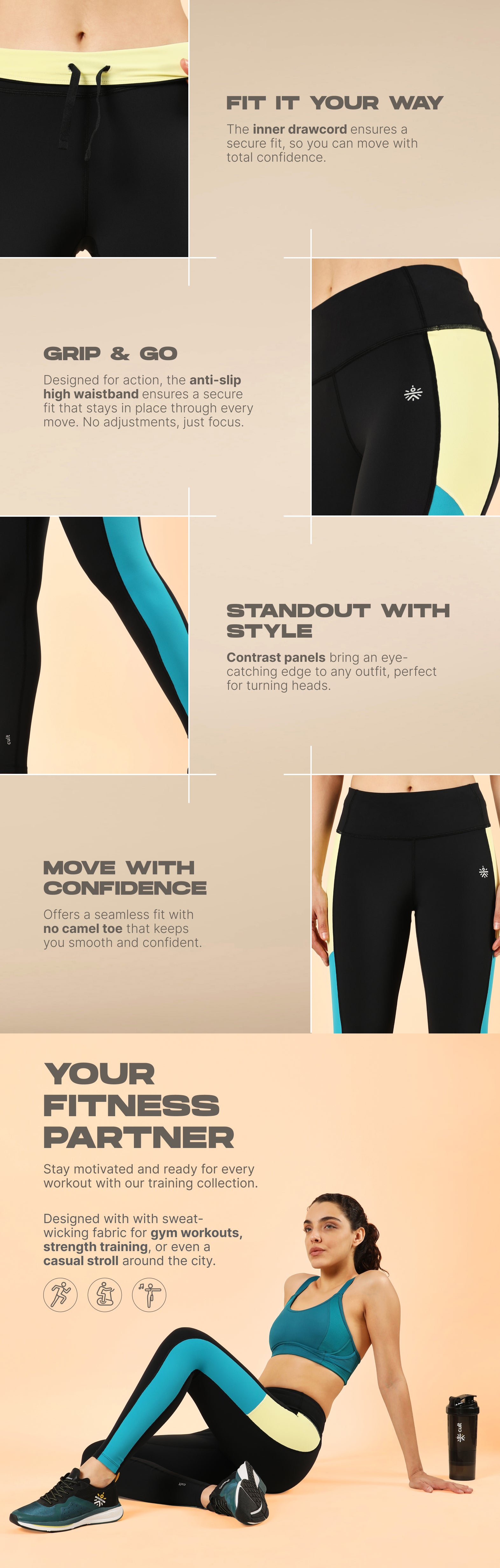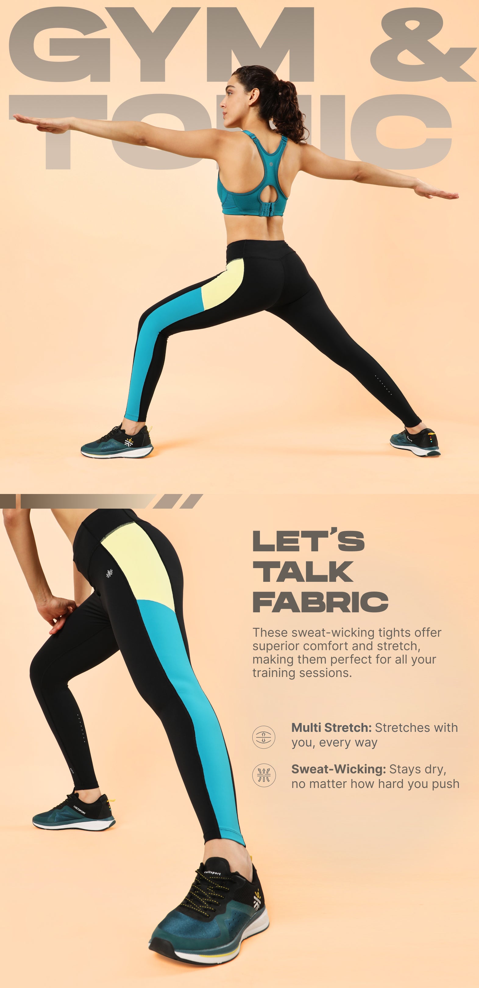 Slay in the AbsoluteFit Leggings with neon pop colourblock panels. These tights are odour resistant with fly dry technology to wick away sweat and keep up with your workout game. Designed with cuts and uniquely placed lines in front and back these tights accentuate your body to give you the best shape and turn some heads while at the gym.
