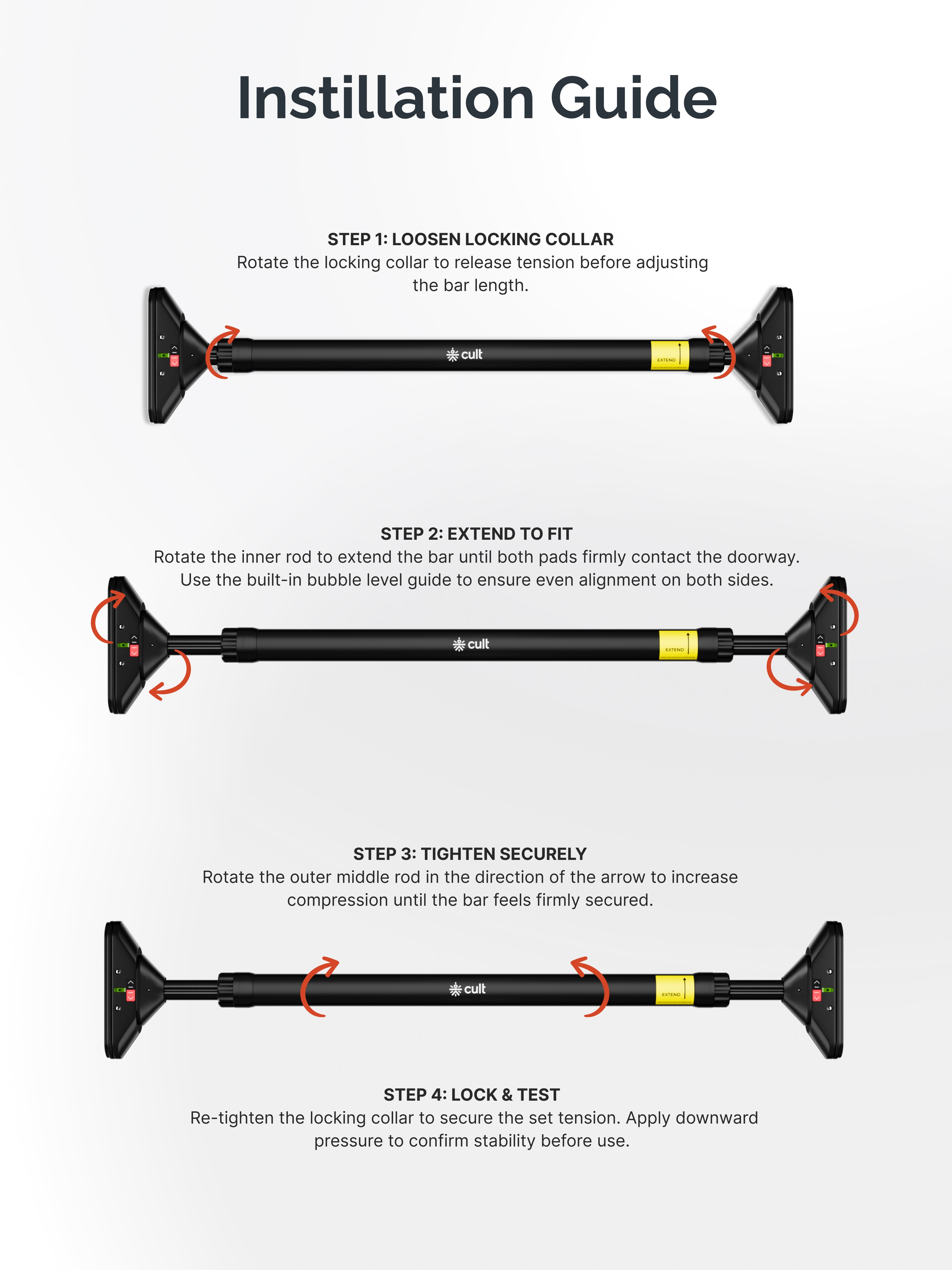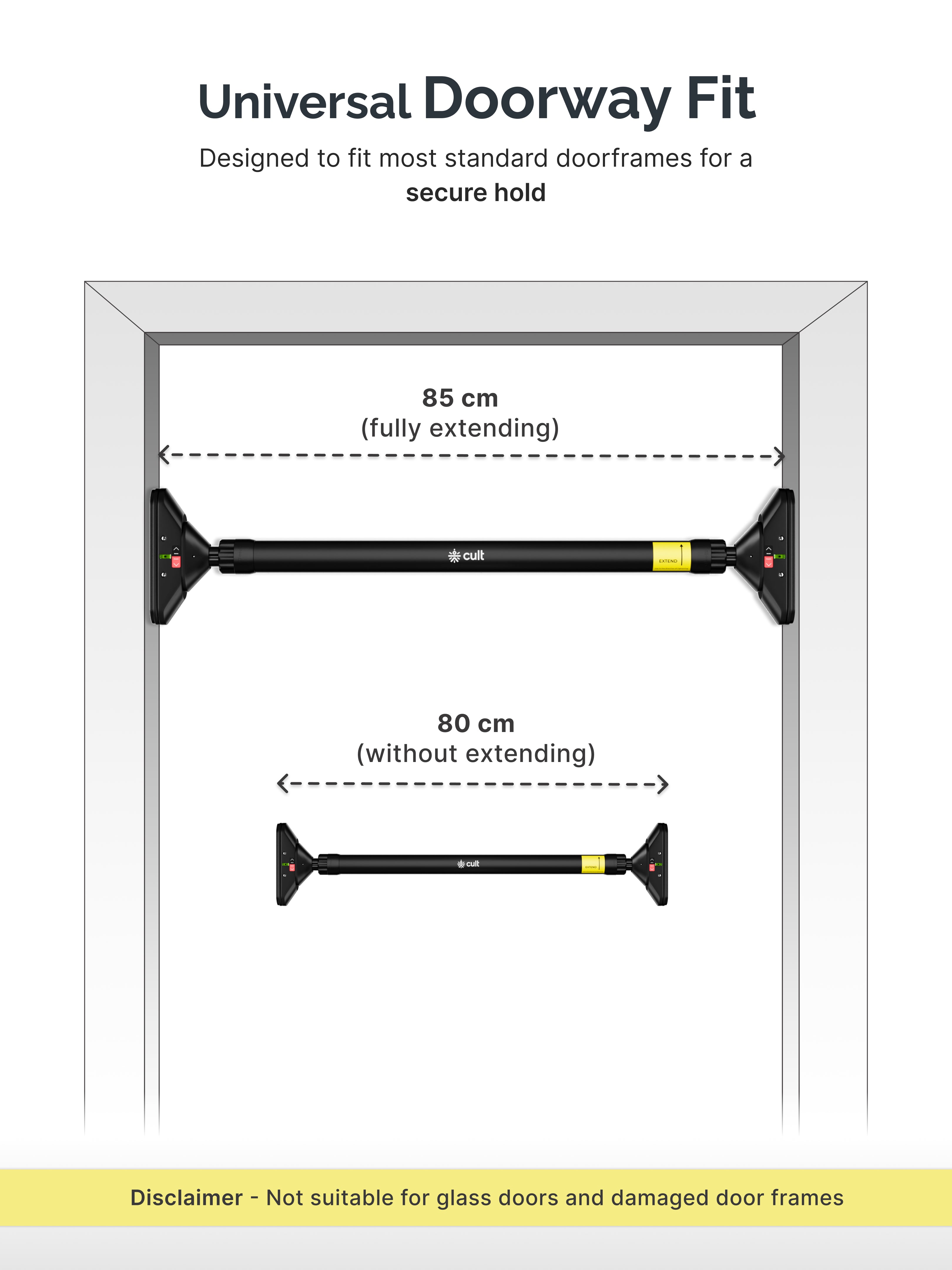Cult Adjustable Pull-Up Bar for Doorway | Heavy-Duty Steel | Multi-Grip Home Gym Bar for Pull Ups, Chin Ups & Core Workout | Size - 72-110cm