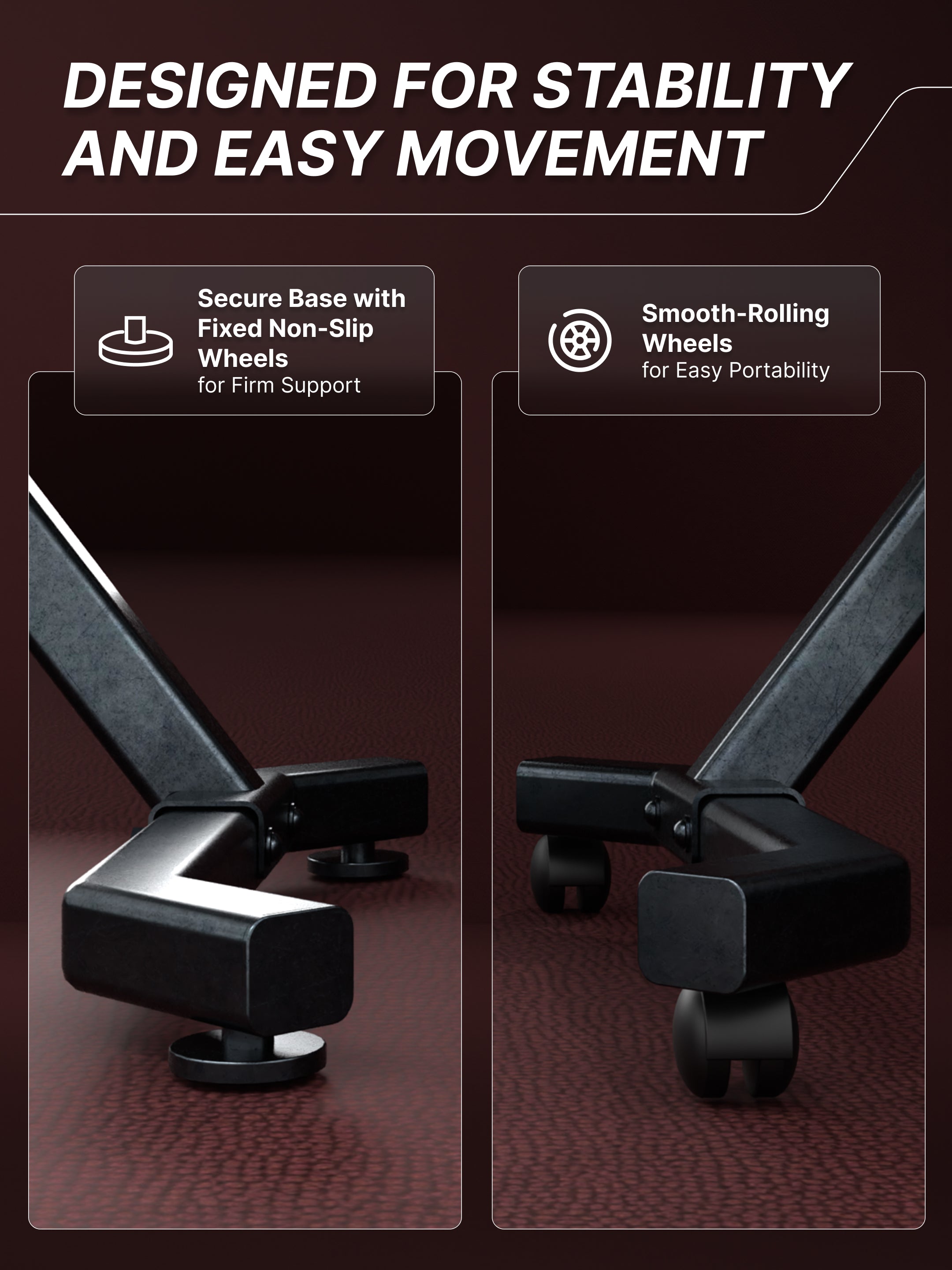 Cult Dumbbell Stand is a heavy-duty storage solution supporting up to 100 KG. Designed with removable wheels & fixed feet, with a built-in tablet holder, and protected edges for added safety, it keeps your home gym organized, mobile, and workout-ready. Perfect for compact spaces and everyday training.