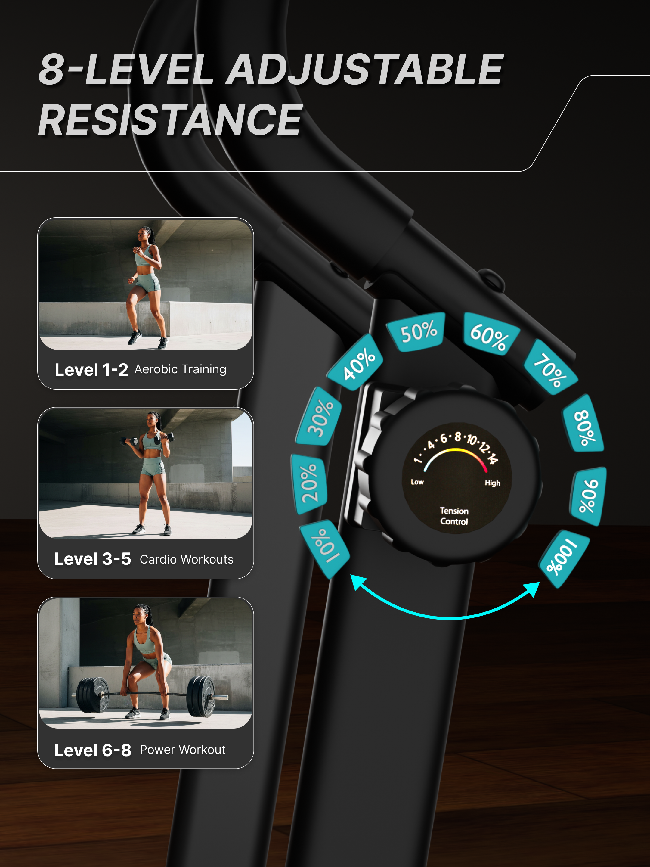 - 8-LEVEL MAGNETIC RESISTANCE – Ultra-smooth, noise-free resistance lets you progress from light cardio to high-intensity training effortlessly.