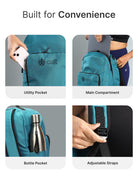 BUILT TO LAST: Crafted with durable polyester and water repellent fabric, it keeps your essentials dry and safe while travelling or on outdoor errands. FOLDABLE CONVENIENCE: Compact and portable, this backpack simply folds into a compact form and clips with the carrying hook—perfect for travel, quick errands, or daily use. PACK SMART, MOVE EASY: Designed with two compartments and a side pocket for your water bottle, keys, or wallet, this bag gives you just the right amount of space for your essentials. SMART DESIGN: Take on the day with the adjustable shoulder straps that offer a customised fit and durable zippers for long-lasting use and all-day comfort, no matter where you’re headed. SPACIOUS STORAGE: With a handy 25 L capacity, it carries your essentials without weighing you down.